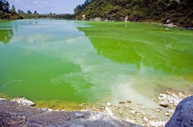Озеро знаходиться в Новій Зеландії і має світло зелене забарвлення. Такий колір водойма набуває завдяки високому вмісту в ньому сірки й окисів заліза.