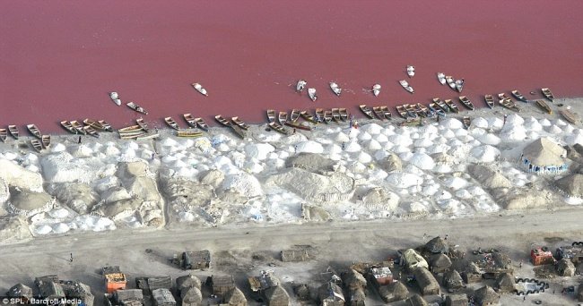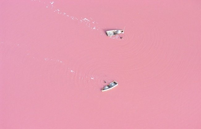 Рожеве озеро або озеро Ретба знаходиться в Сенегалі. Свою назву озеро отримало через особливий колір води. Такий колір викликаний великою кількістю ціанобактерій у воді: поглинаючи сонячне світло, мікроорганізми виділяють пігмент, що забарвлює воду. Особливо він помітний під час сухого сезону. Іншого органічного життя в Ретба немає – для водоростей і риби занадто висока концентрація солі у воді. Її вміст досягає 40%. Сіль видобувають з дна цього озера вже протягом майже 50 років.