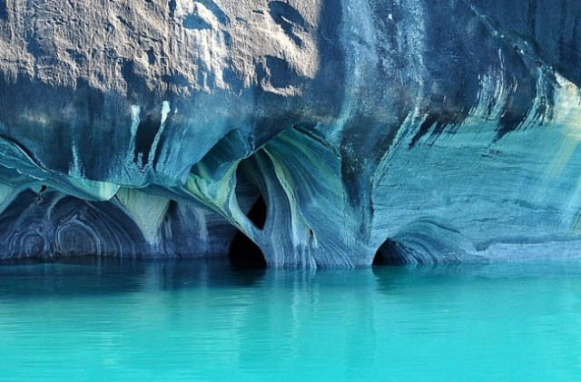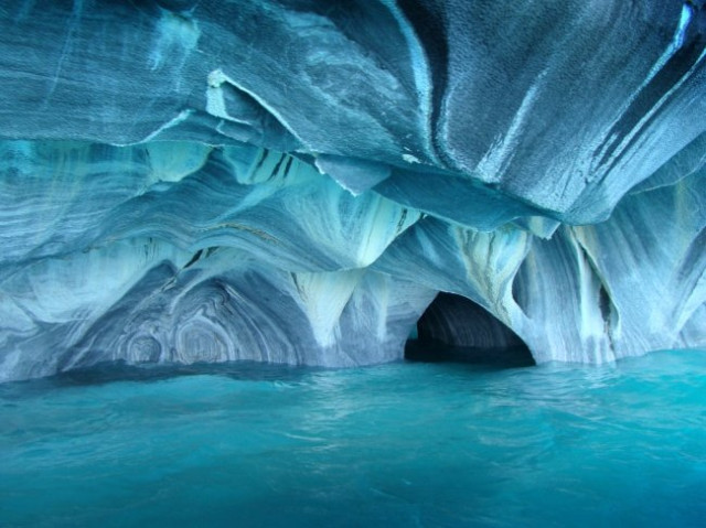 Одне з найглибших озер Південної Америки знаходиться на кордоні двох країн – Чилі та Аргентини. Вода в ньому переливається всіма відтінками: від смарагдово-бірюзового до кольору аквамарина. У цьому фантастичному місці навіть небо не таке блакитне, як синь озера. А посередині водойми видніються брили величних Мармурових печер. Більше тисячі років вода омивала береги гірських порід і створювала ці дивовижні лабіринти.