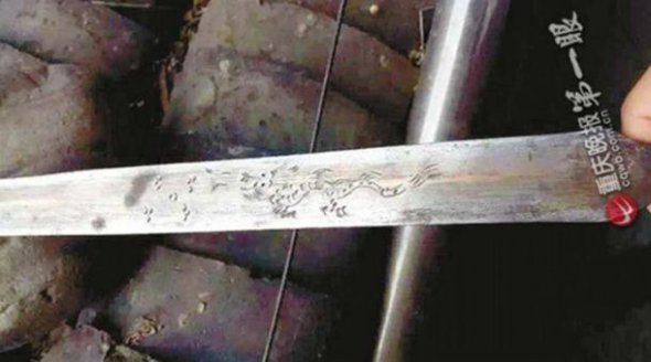 60-річний китайський фермер знайшов на своїй землі меч. Використовував його як кухонний ніж протягом кількох років. Експерти встановили, що меч належить до династії Цин. На ньому зображені персонажі твору Цин Ланг Цзянь, що означає "Зелений дракон".