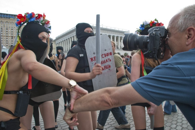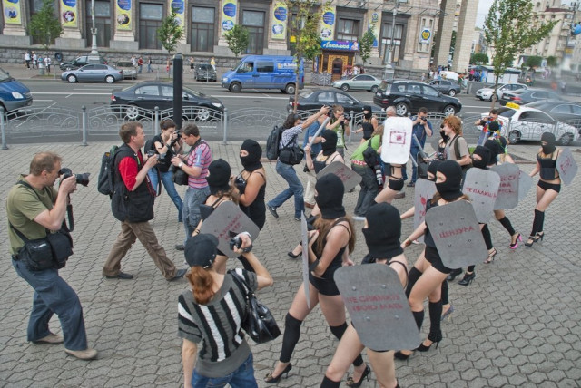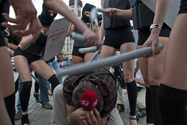 Світ вражає: Дівчата з FEMEN знову відзначилися :). Тепер вони "били" журналістів