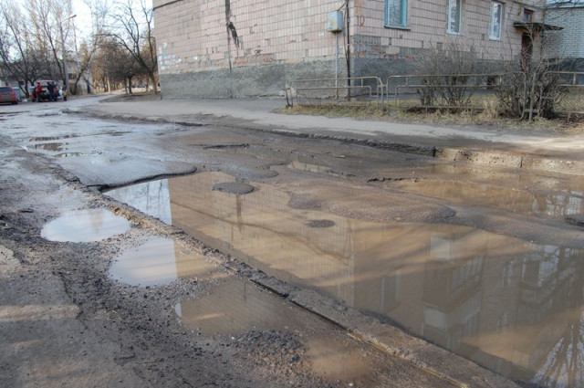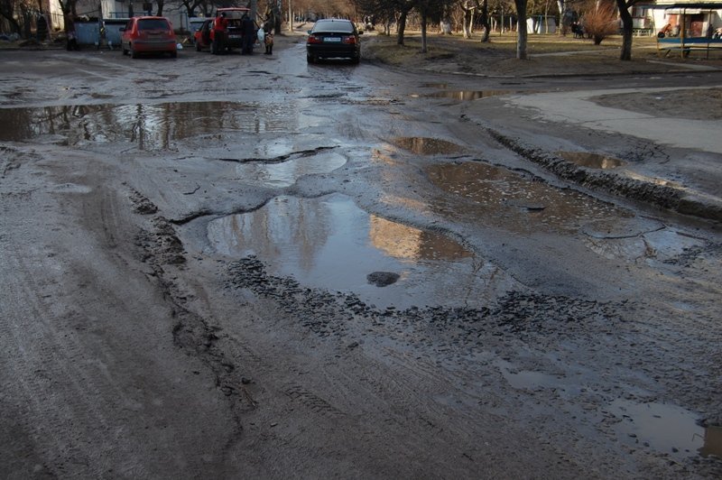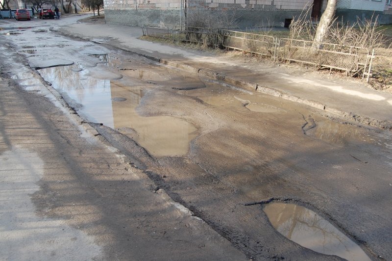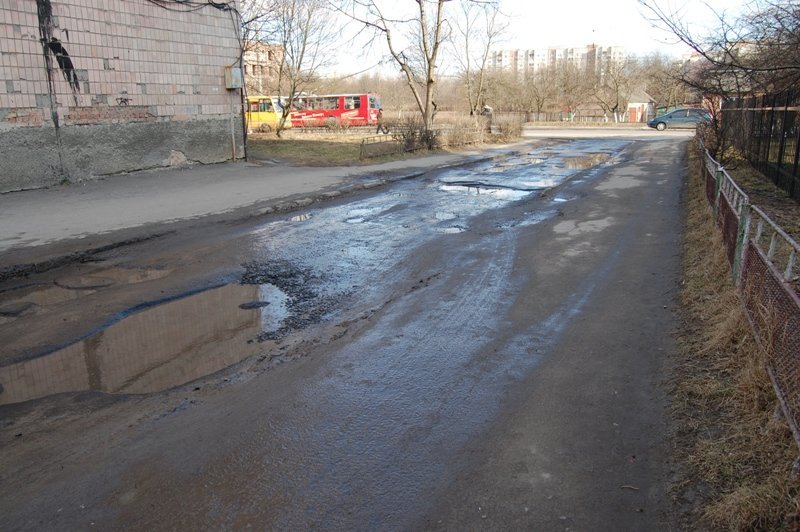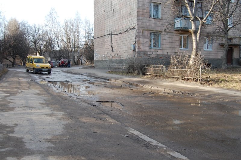 Ремонтувати той відрізок дороги ніхто, мабуть, і не збирається. З року в рік асфальт все більше і більше розвалюється. І водії цей двір не люблять – тут спробуй проїдь акуратно. А жінки на підборах – то і сміх, і гріх, як спостерігаєш таку картину.
