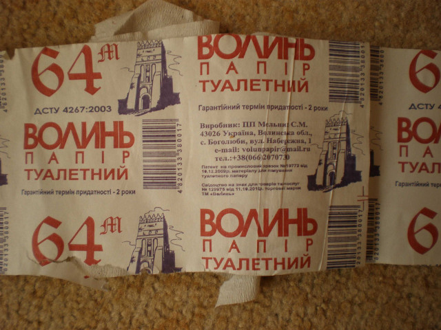 Туалетний папір із зображенням Луцького замку. Називається "Волинь".