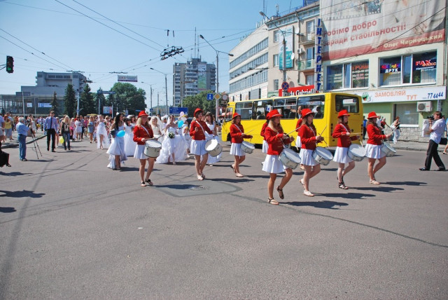 Анатолій,температура у цей день була 33-34 градуси вище нуля.Багато дівчат просто не захотіли виходити в таку спеку.Ми,журналісти бігали коло учасниць у легких футболках спливаючи потом,а представ собі як їм було важко цілий день виходити у весільних сукнях з перетягнутими корсетами.Плюс в багатьох високі підбори.