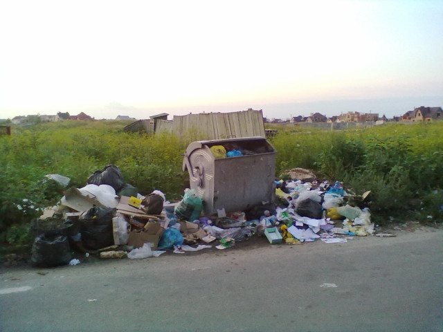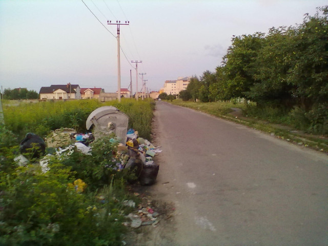 А Вам було б приємно, якби Ваша дитина щодня гуляла біля цієї купи, яка ще й часом приваблює бездомних песиків і котиків, або коли Ви хочете викинути сміття, а до бака навіть підступитися не можна?