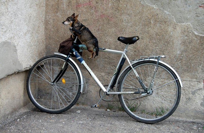 Дякую за відгуки та поради. Собака моя, сучка, різні сидіння пробували, така мотня виявилась найбільш оптимальною. В день буває їздить по 20 км і щоразу дуже радіє, коли бачить підготовку велосипеда до поїздки. Взагалі це в нас родинне, мали і велосипедистів, і мотоциклістів. На фото не чуже місце, а стіни рідного дому =)