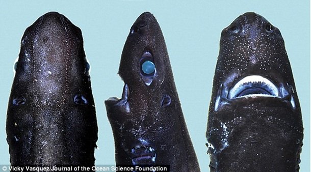 Згідно з дослідженнями, велика частина виявленої у Мексиканській затоці акули покрита фотоформами – органами світіння.