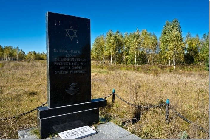 Жіночка, чиї батьки чи то рятували, чи то розстрілювали євреїв, сумно дивиться нам услід. Мій рафік захитався горбами, тримаючи курс на невідомо ким поставлену точку на гугль-карті. Та скоро глибока колія слабопрохідної дороги крізь торф’яники поставила нашу експедицію під питання. Навіть не знаю, що би вдіяв на нашому місці Елайджа Вуд — в його мандрах до Трачимброду вела добре асфальтована дорога.