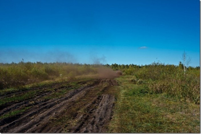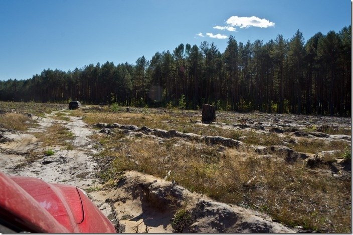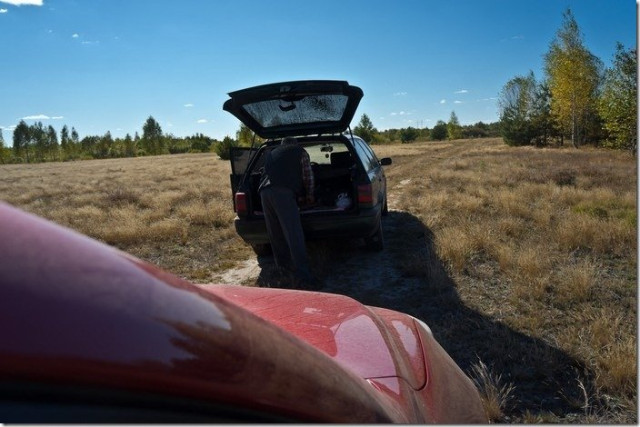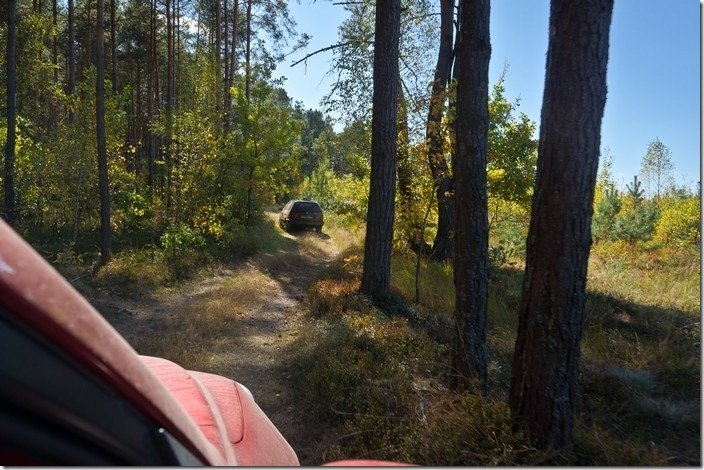 На щастя, несподівано нам трапився місцевий житель, котрий незнамо що забув у волинських болотах. Карколомними поворотами через болота та ліс їхали ми слідом за його авто. Та раптом, десь у глушині, стали.