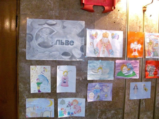 В фойє лялькового театру були розміщені малюнки діток які приймали участь в акції. Я випадково опинився там і спостерігав за цим дійством - малюнки неймовірні, дітки від 2-х рочків і більше, хтось з батьками, хтось сам.