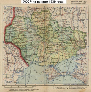 Для сравнения возьмем сталинское 20-летие. В 1930 г. население УССР было 29,6 млн. чел., в 1950 г. – 36,8 млн. чел. И это при огромных потерях в Великой Отечественной войне – около 8 млн. чел. Правда, нужно учесть, что население УССР в 1950 г. пополнилось населением присоединенных в 1939, 1940, 1945 гг. территорий – Галичины, Бесарабии и Закарпатья (см. карту), т.е. 8-9 млн. чел. Еще из состава УССР в 1940 г. вышла Молдавская ССР (занимающая территорию примерно нынешнего Приднестровья), войдя в образованную на территории присоединенной Бессарабии новую Молдавскую ССР. Крым тогда еще в УССР не входил. Таким образом, потери и прирост за счёт расширения территорий Украины практически компенсируют друг друга. Итого получаем: чистый прирост в 6-7 млн. чел., т.е. по меньшей мере +20%, несмотря на голод 1932-1933 и 1946-1947 гг.