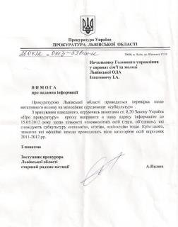 Львівська прокуратура просить управління у справах сім'ї та молоді ОДА надати інформацію на предмет кількості неповнолітніх осіб (груп, об'єднань), які сповідують субкультуру "гопніків", "готів", "скінхедів" тощо. Окрім того прокурори просять проінформувати про офіційні заходи, що проводились цією категорією осіб впродовж 2011-2012 рр.