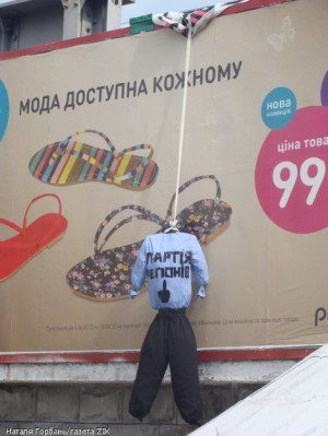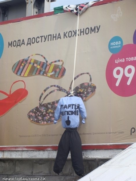 Світ вражає: У Львові "повісили" опудало Партії регіонів. ФОТО