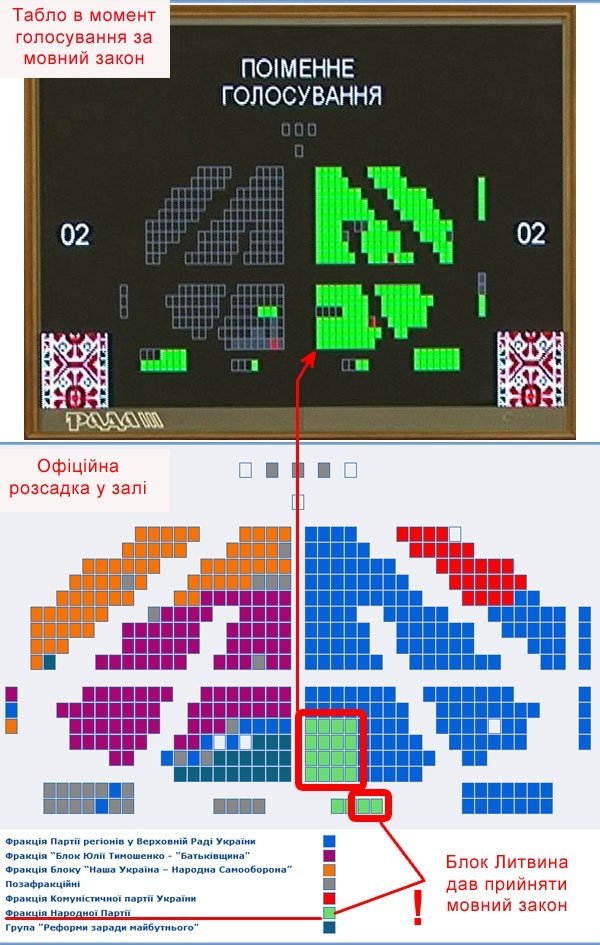 Хоча самі литвинівці за закон про язык не голосували, бо у них лохторат не той - свої дірки вони віддали регіоналам, аби допомогти проштовхнути закон.