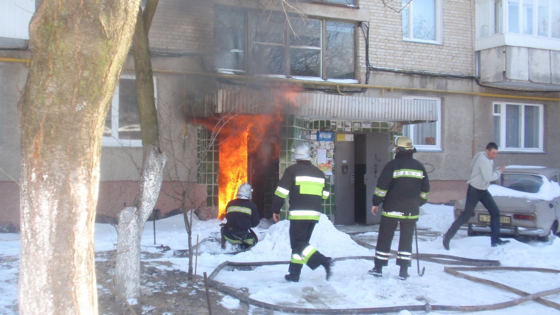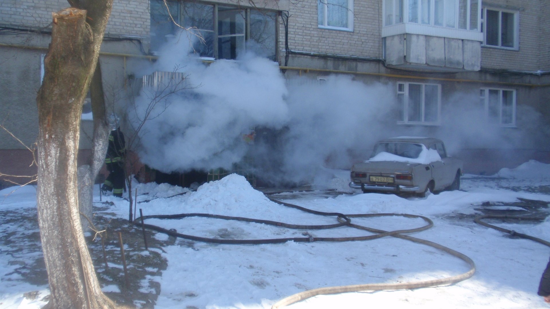 Пожежники тушать, а чувак на першому фото курить. Наш народ.