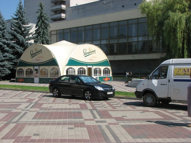 сам намет не поганий. в порівнянні з іншими пивними наметами. я думав буде щось страшніше. АЛЕ... якщо "простий смертний" захотів би легально, з дотриманням усіх процедур встановити цю точку, то 100% отримав би відмову в управлінні архітектури: "візуально не відповідає ансамблям центру міста, протирічить розміщеним поряд СОБОРУ та ПАЛАЦУ КУЛЬТУРИ, не сприяє загальнодержавним тенденціям і програмам боротьби з пияцтвом і т.д."