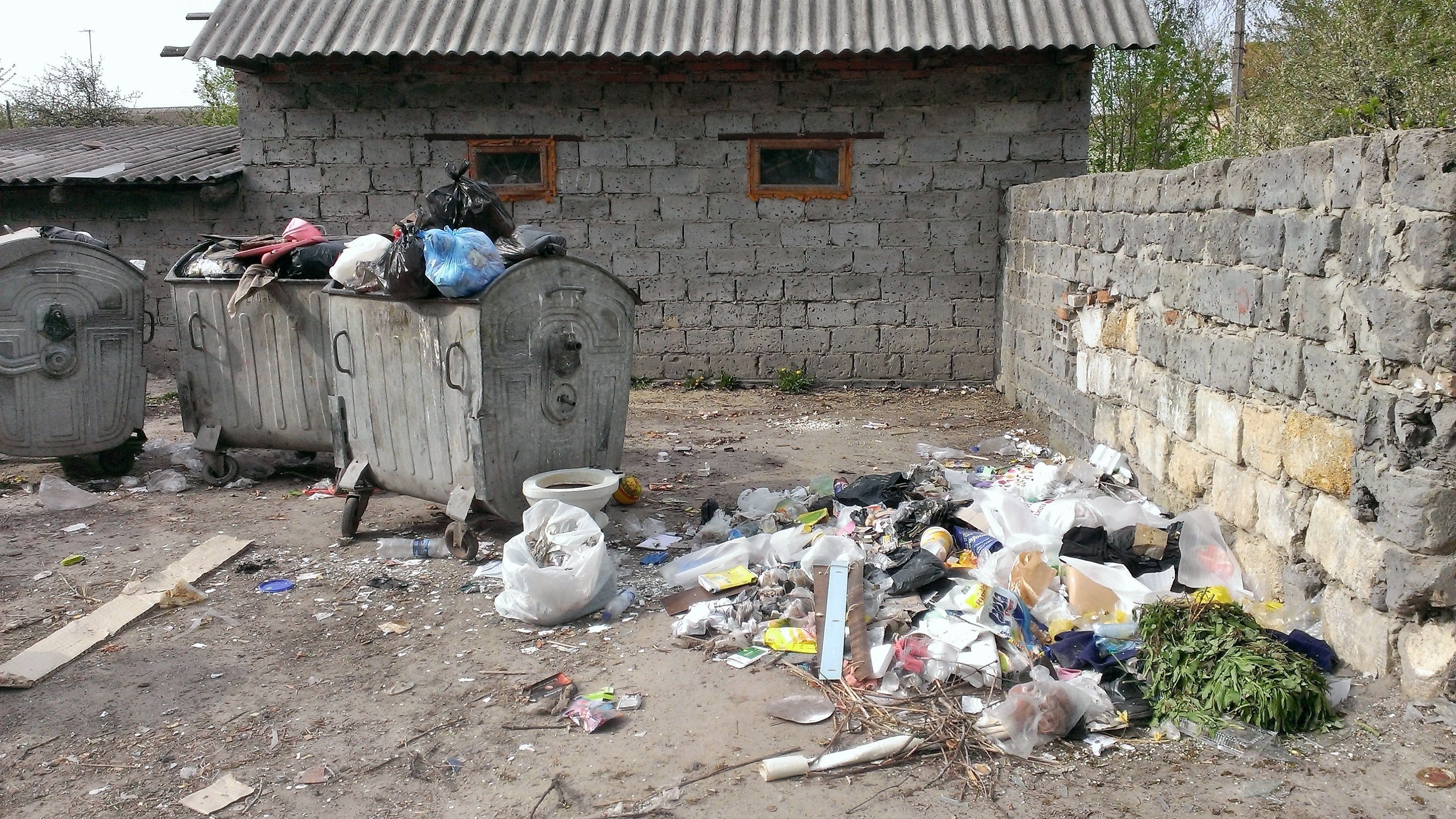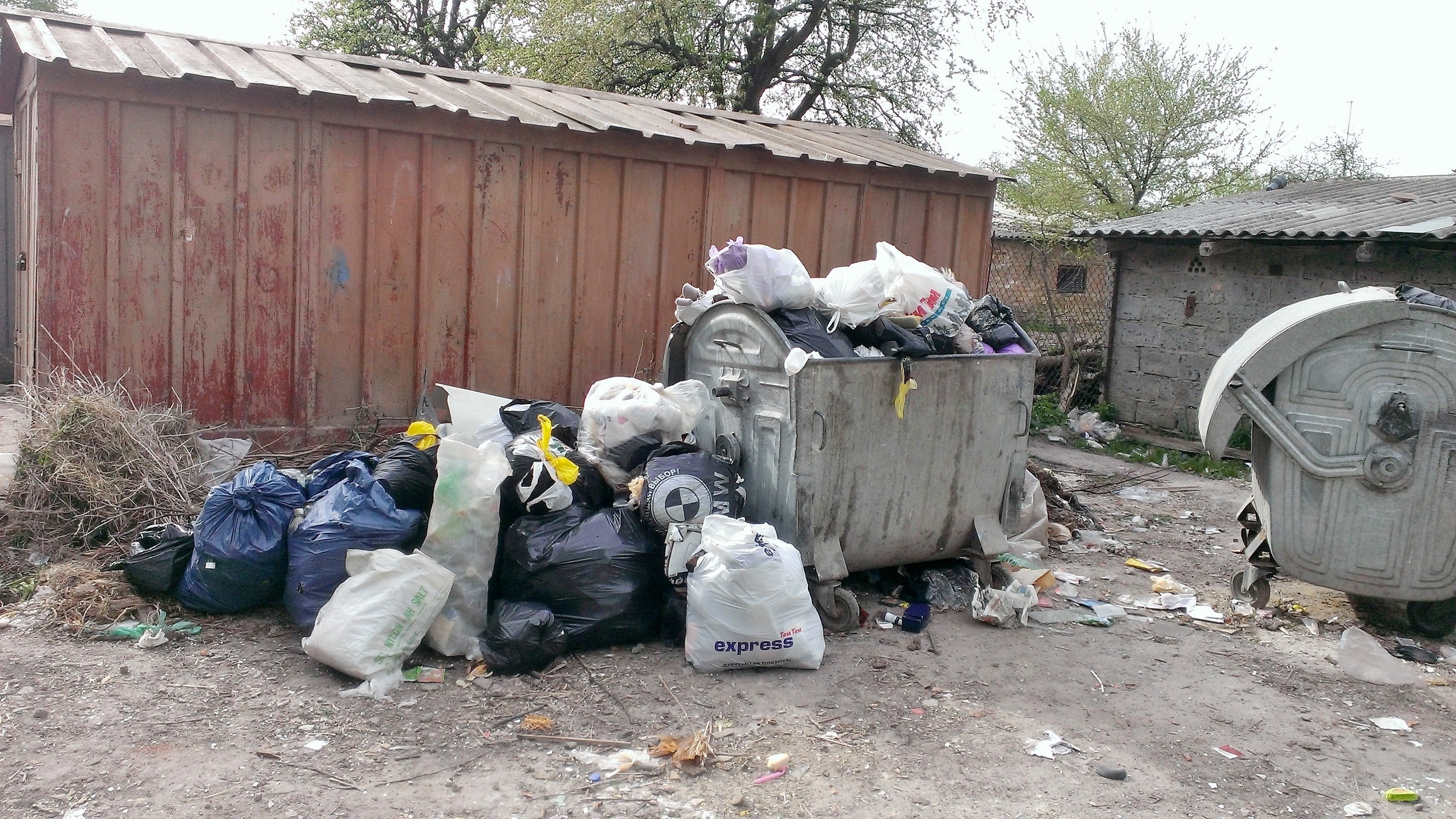 Сьогодні сміття вивезли. Вивезли те, що валялось в мішках поруч з контейнерами. Контейнери переповнені - їх ніхто не почистив. Отже, завтра все знову буде в такому самому вигляді як на ось цих фото...