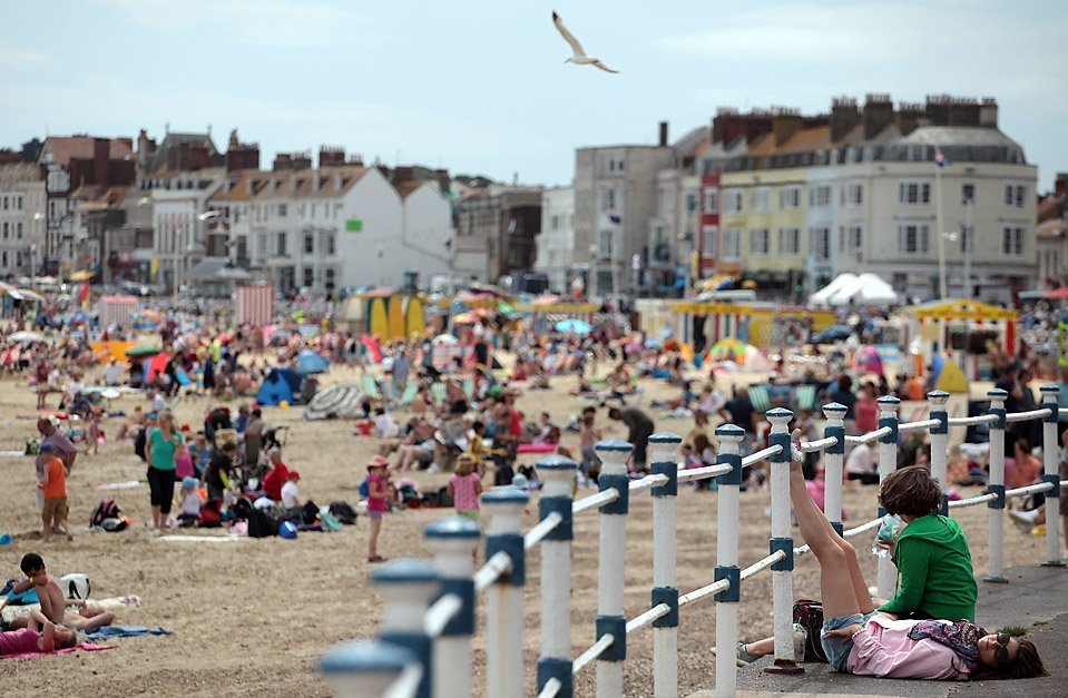 1. Люди наслаждаются летними деньками на пляже в Вэймауте, Англия. (Matt Cardy/Getty Images)