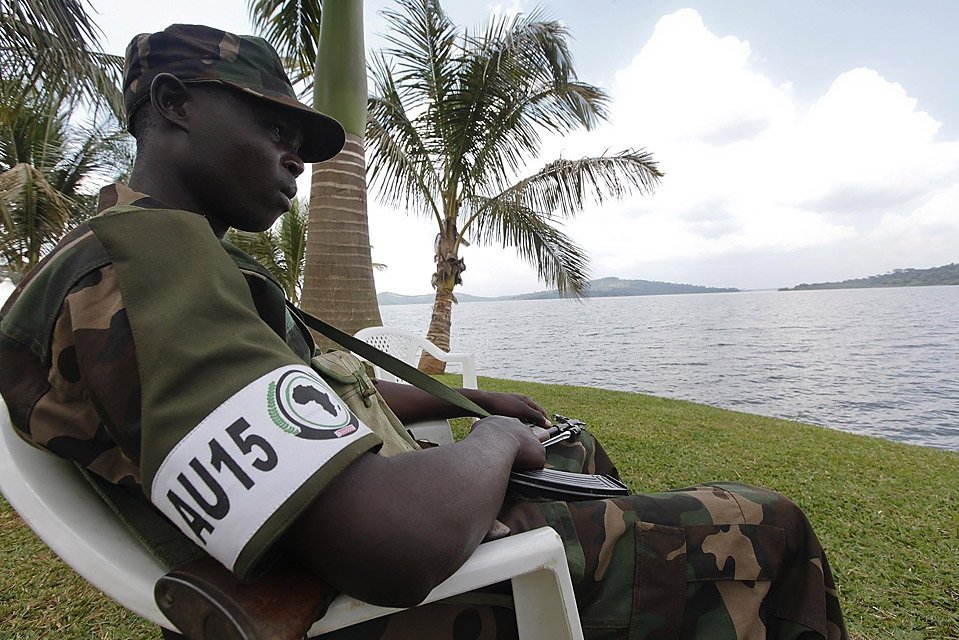 8. Солдат из Уганды охраняет место проведения 15-ого саммита Африканского союза в Кампале, Уганда. Большая часть глав Африканских государств прибудут на саммит, который пройдет с 25 по 27 июля. (Dai Kurokawa/European Pressphoto Agency)