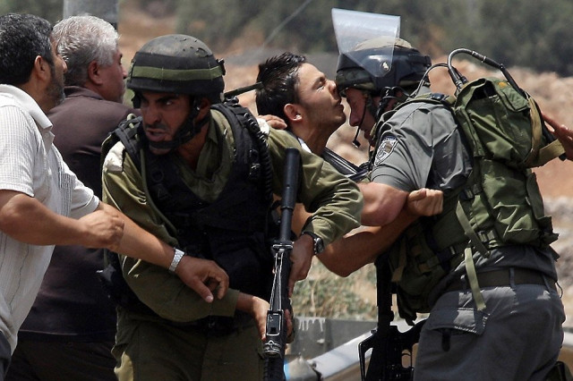 6. Палестинцы вступили в конфликт с израильскими солдатами в поселке Луббан аль-Гхарби после того, как израильские власти снесли два дома и четыре магазина, которые, по их заявлению, были построены без разрешения армии, недалеко от дороги, ведущей в близлежащее поселение евреев Бейт Ариех. (Abbas Momani/AFP/Getty Images)