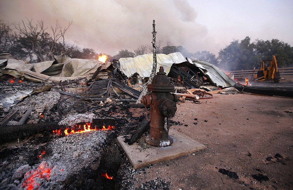 6. Огонь догорает в Техачапи, штат Калифорния, где выгорело 1400 акров леса. Из-за лесных пожаров сгорело 40 домов и были эвакуированы десятки людей. (Felix Adamo/The Californian via Associated Press)
