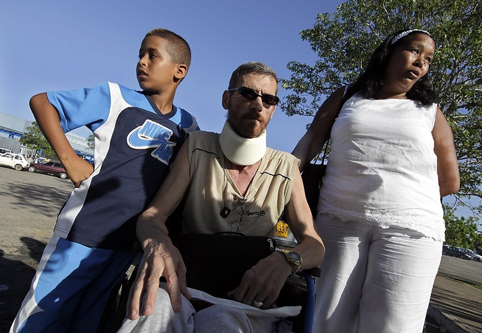 8. Отпущенный на свободу политзаключенный Ариэль Сиглер Амайя (в центре) ждет со своей женой и сыном отправления в Майями из аэропорта Гаваны. Сиглер отбывал 25-летний срок в тюрьме за сотрудничество с США с целью дестабилизации ситуации на Кубе. Сам Сиглер и представители США отрицают все обвинения. (Enrique De La Osa/Reuters)