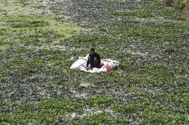 10. Кашмирец ловит рыбу в озере Дал в Шринагаре. (Mukhtar Khan/Associated Press)