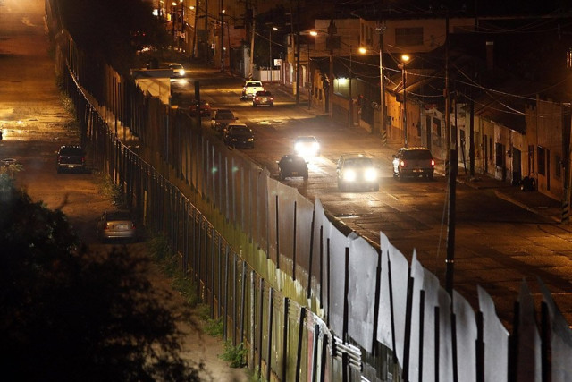 9. Транспорт едет вдоль забора, отделяющего города Ногалес, штат Аризона, и Ногалес, Мексика. В среду федеральный судья отменил некоторые положения закона об иммиграции в штате Аризона, который вступает в силу в четверг. (Jae C. Hong/Associated Press)