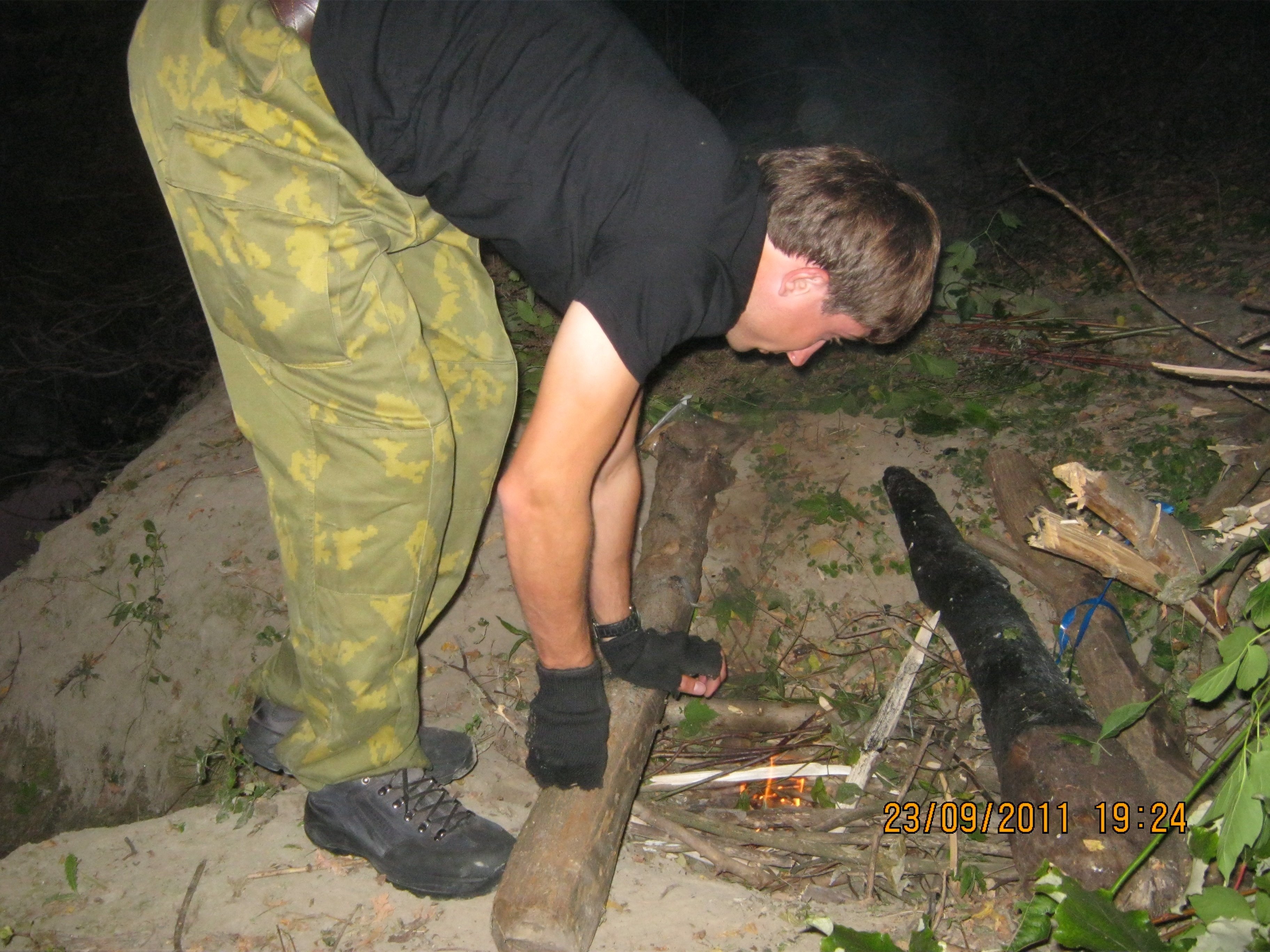Отже ми відійшли від населених пунктів,добрих десять кілометрів і все таки знайшли місце для ночівлі. Причому коли ми його побачили то якось одночасно зрозуміли,ще це воно і сказала один одному про це одночасно. Хоч в перший день пройшли ми не багато,та були трохи стомлені,адже взяли відразу досить високий темп . Крім того, відчуття свободи і нових вражень добряче п’янило. Але знахідка гарного місця для привалу нам надало сил і досить швидко ми облаштували все, що нам було потрібно. Назбирали дров,запалили вогнище,облаштували місце для спання.