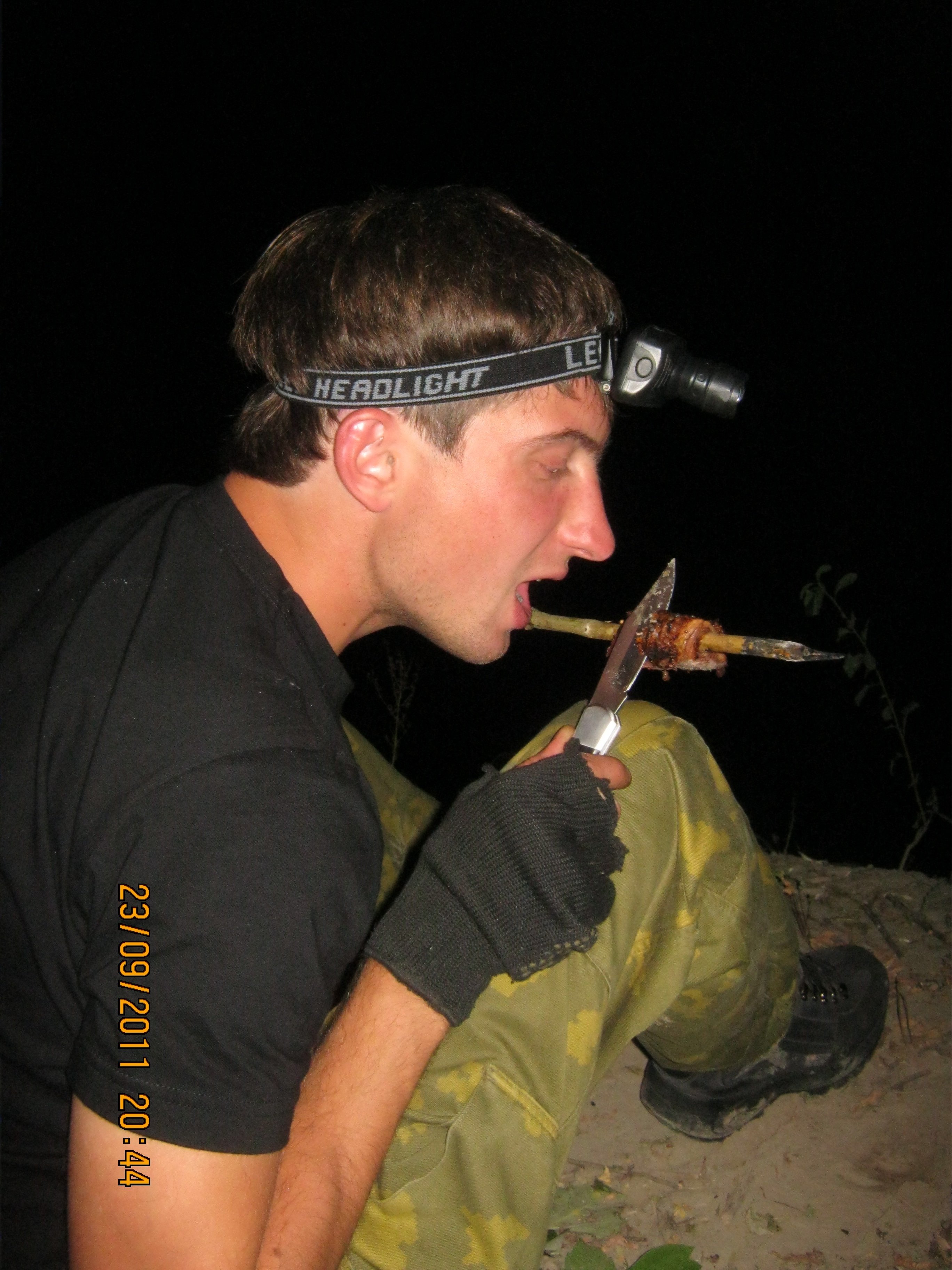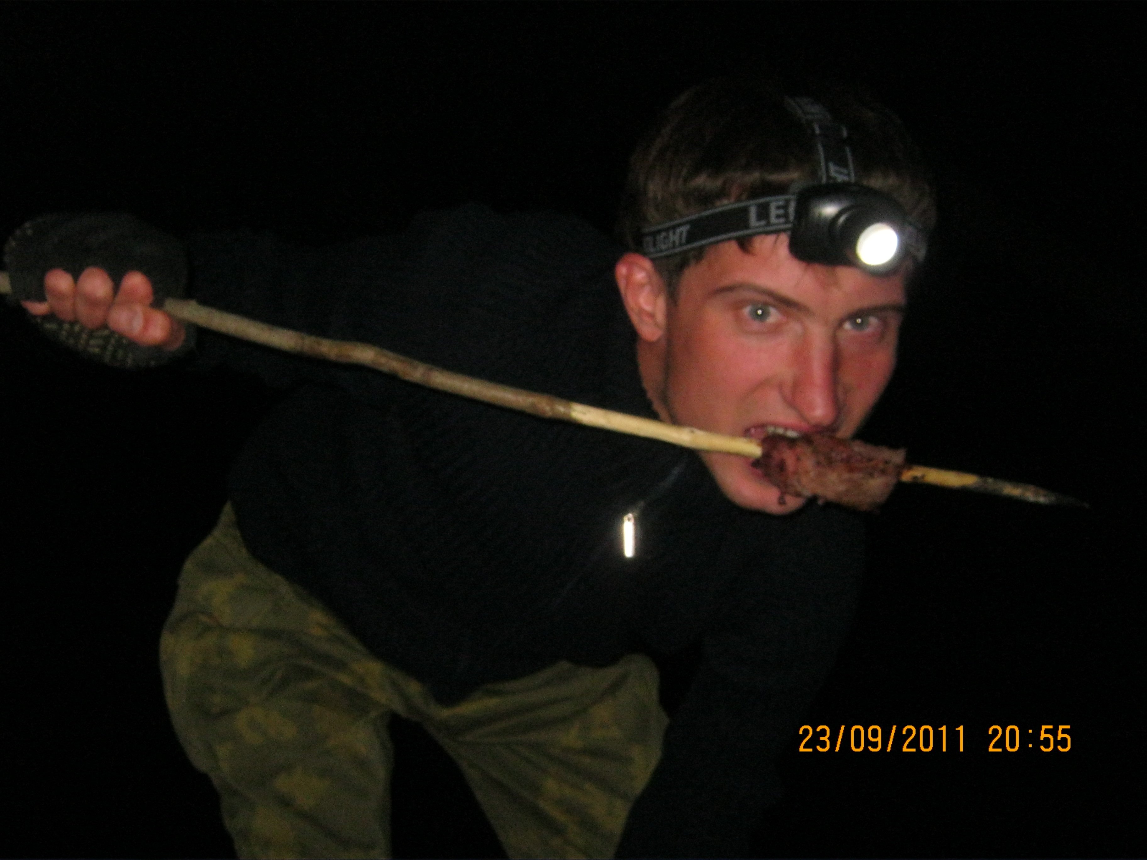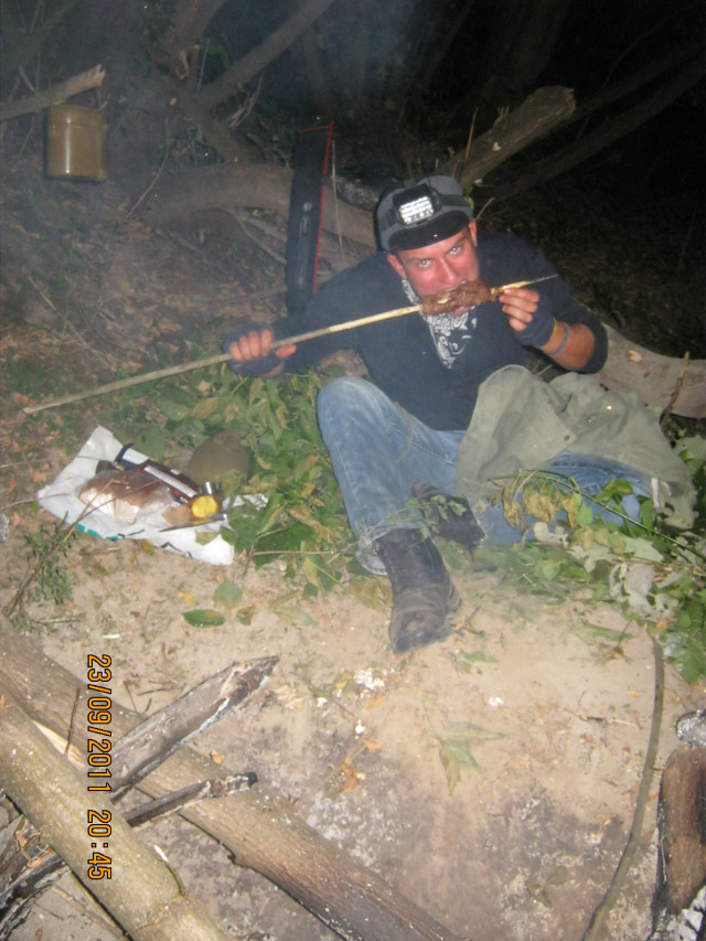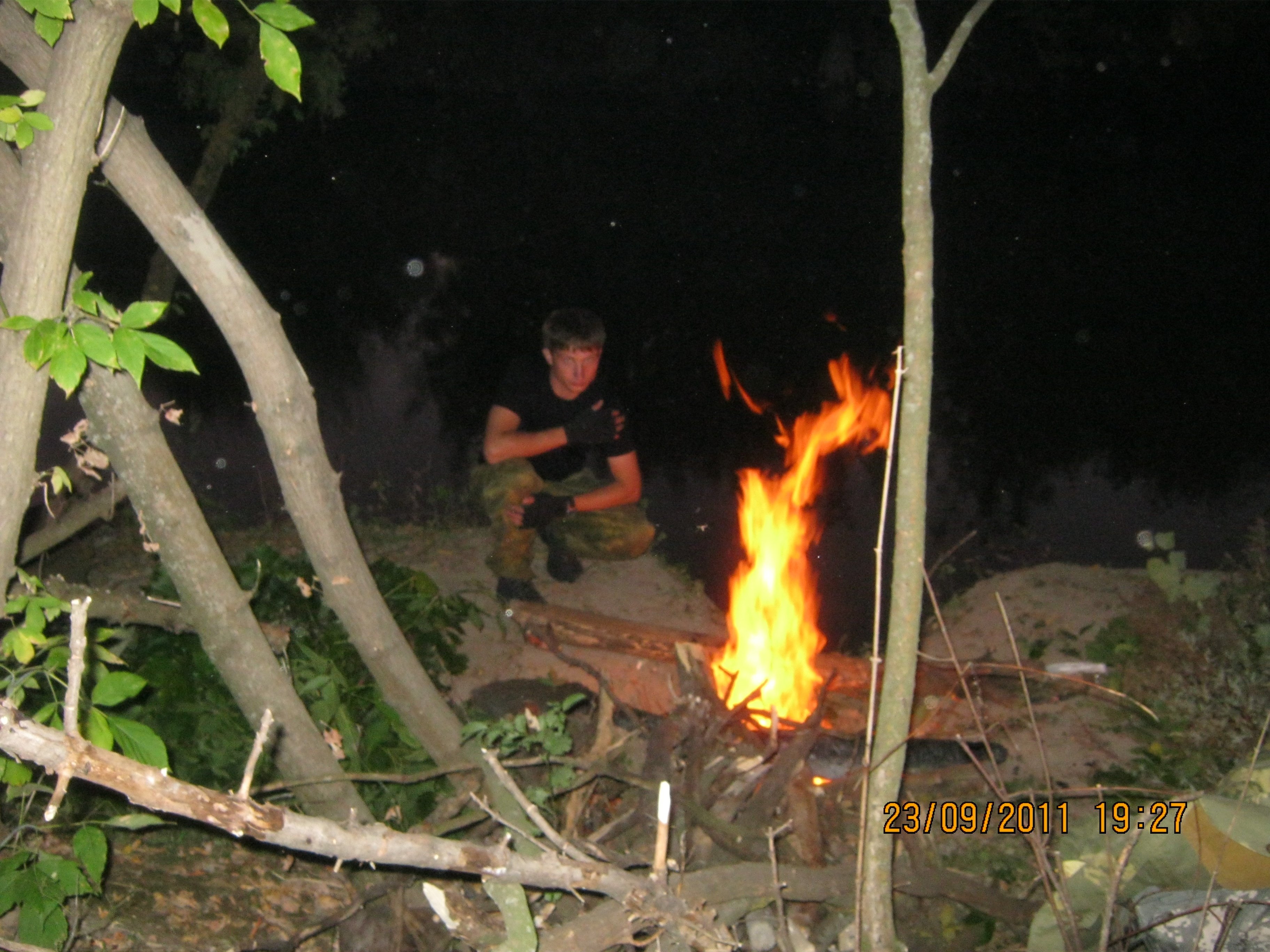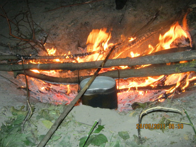 Не знайшовши дров, палимо зелені кущі і все, що може горіти. У вогонь закидаємо кілька каменів. Та не подумайте, їсти у нас було, що, і ми ще не настільки здичавіли і з’їхали з глузду щоб їсти каміння, через деякий час ми їх дістали і сиділи на них щоб зігрітися. Розігріли трохи тушонки, заварили чай, перекусили випили коньяку . Якось зігрілися. Тут вже і ранок настав. Нас ще вистачає на десяток закидів спінінгом і ми вирушаємо додому.