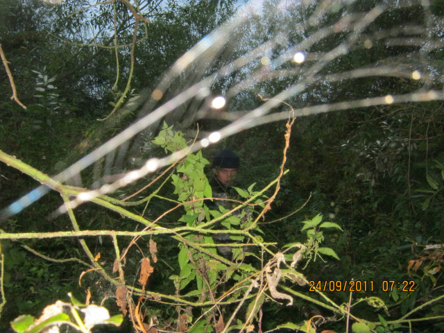 Ранок нас зустрів невеликим туманом і росою. Через десяток метрів ми до поясу були мокрі, адже тут була дуже висока не кошена трава, але хіба нас могла зупинити така дрібничка. У нас була ціль дійти і ми йшли. Ще через декілька кілометрів перед нами розкинулись важко прохідні хащі. Трава тут переплелась у неймовірну павутину з деревами та кущами і заплутувалась за ноги,руки,екіпіровку. Було багато кропиви і будяків,а ще більше колючих кущів. Але і цю перешкоду ми подолали з гордістю. Пройшовши ці зарослі ми вийшли на чисте поле і наш шлях став набагато легшим. На протилежному боці річки розкинулось «невеличке поселення бідних українців» . В переносному розумінні,бідних. Адже там стояли не будинки,а палаци, з оглядовими площадками,вежами і фонтанами. Ну що ж і олігархам місцевого розливу не чужі бажання звичайних людей, усамітнитись з природою,і бути до неї ближче,по далі від грошей.
