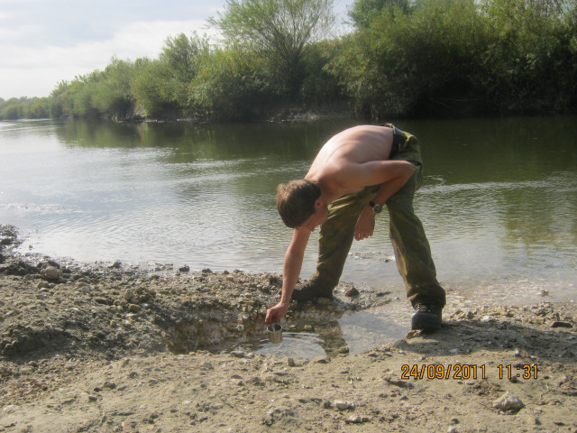 А ми все йшли і йшли у перед. З кожним кроком наша ціль була все ближче і ближче. А я з кожним кроком все більше і більше пересвідчувався, що прекрасне поряд. Ніколи не думав,що зовсім недалеко, від тих місць де я виріс можна зустріти таку красу. Річка прокладала свій шлях між пологими берегами, а подекуди між височенними обривами. На цих високих стінах, що замкнули річку у свої мури сотні ластівок побудували свої гнізда.Потроху ми пройшли поля,ліси,хащі та болота, і стали знову повертатись до цивілізації не цивілізованих людей. Чому не цивілізованих розповім пізніше. Після десятків кілометрів де ми не зустрічали людей на горизонті з’являлись перші села. В нас закінчувався запас води і нам це було дуже доречно.