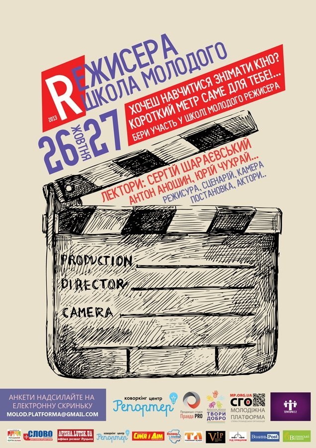 СГО «Молодіжна платформа» за підтримки продакш-студії «ПравдаPRO» організовує «Школу юного режисера», яка відбудеться 26-27 жовтня у коворкінг-центрі «Репортер».