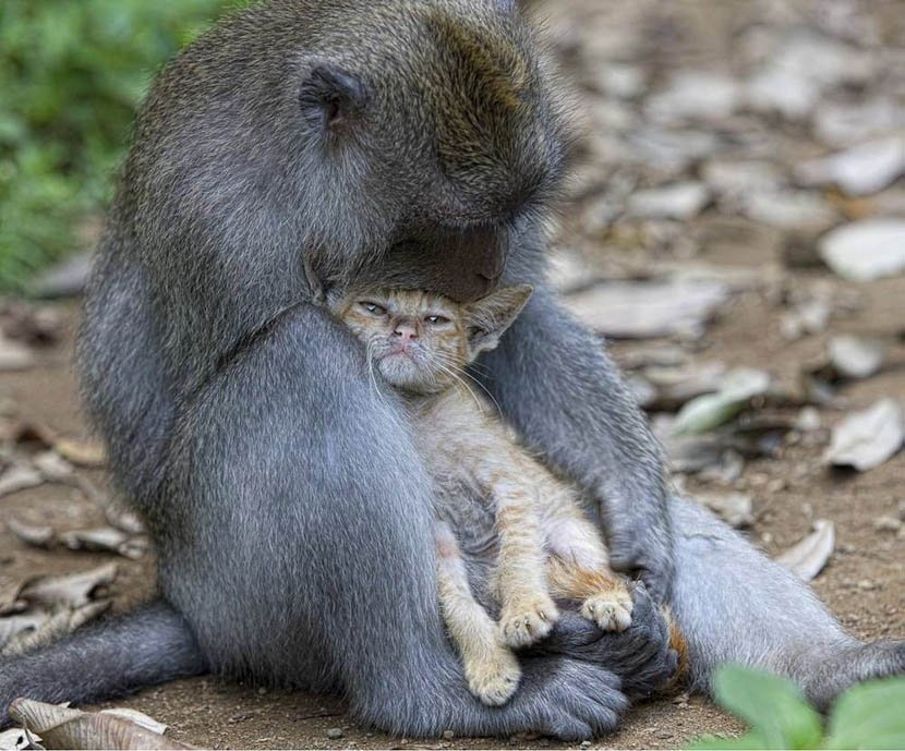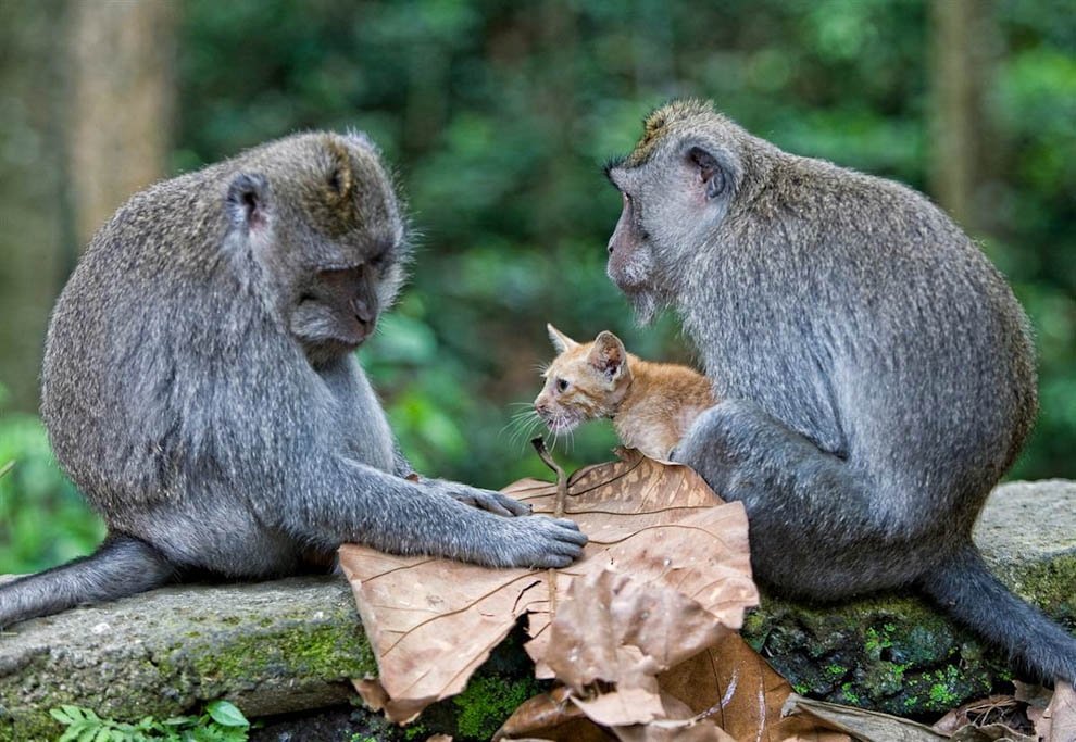 Світ вражає: Обезьяна воспитывает ...котенка