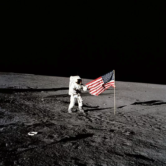 Космічна програма першої пілотованої висадки на Місяць «Аполлон» стартувала у 1961 році і завершилася у 1975 році.