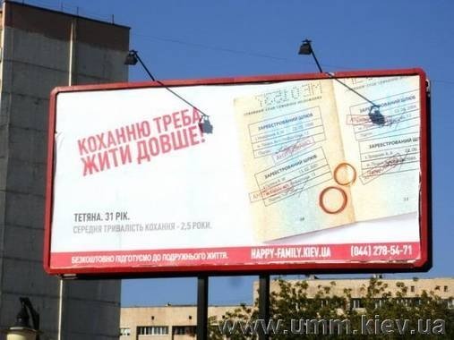 У Києві у багатьох місцях розташована соціальна реклама "Коханню треба жити довше".