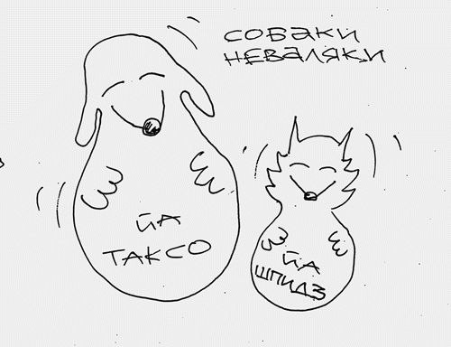 - Собака-Барабака! Шухер! Рвем когти! - и побежали.