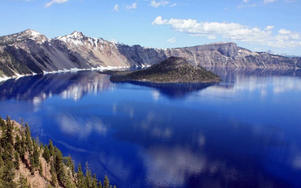 Глибокі блакитні води заповнюють кальдеру вулкана гори Мазама, роблячи Озеро Крейтер одним із найкрасивіших у Північній Америці.