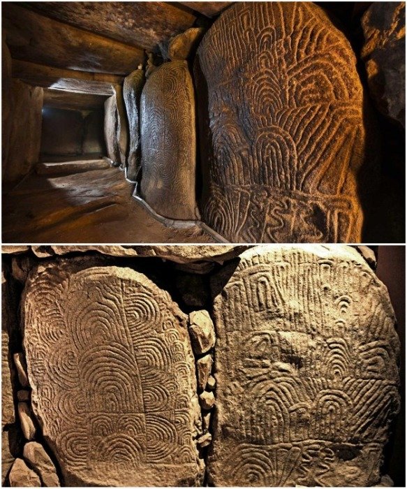 Усередині гробниці дослідниками були виявлені вирізані з каменю символи і візерунки, зміст яких в основному вже розшифровано, але в глибині споруди залишаються унікальні плити, які змушують вчених досі ламати голови над їх мотивами. Але як би там не було, виявлений мавзолей з його пишними галереями і коридорами є найбільш значущим європейським пам’ятником мегалитического мистецтва.