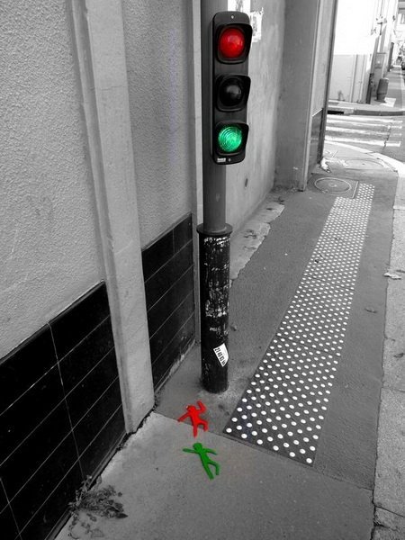Французький художник, що працює під псевдонімом OakoAk, придумав цілу колекцію дотепних і веселих сюжетів, які втілив на міських вулицях. Серія називається “Charlie” і вона розповідає про життя маленьких чоловічків, які населяють світлофори, дорожні знаки і стіни.