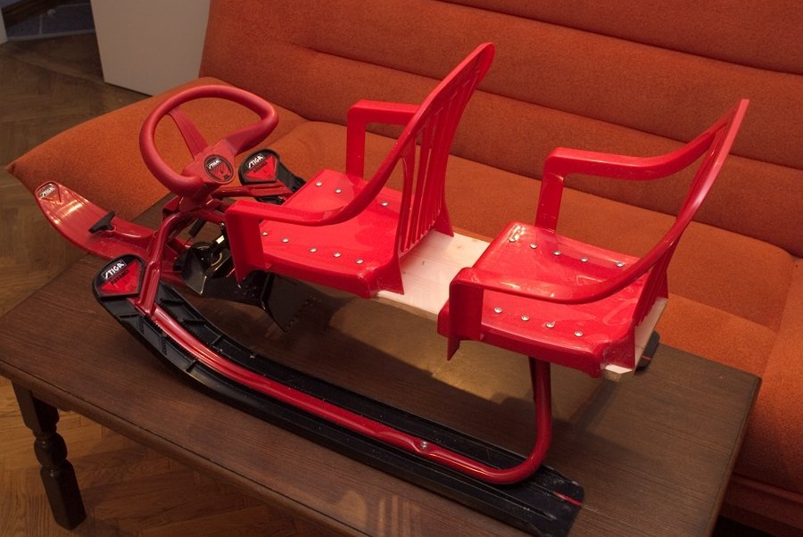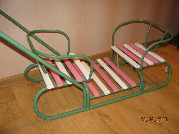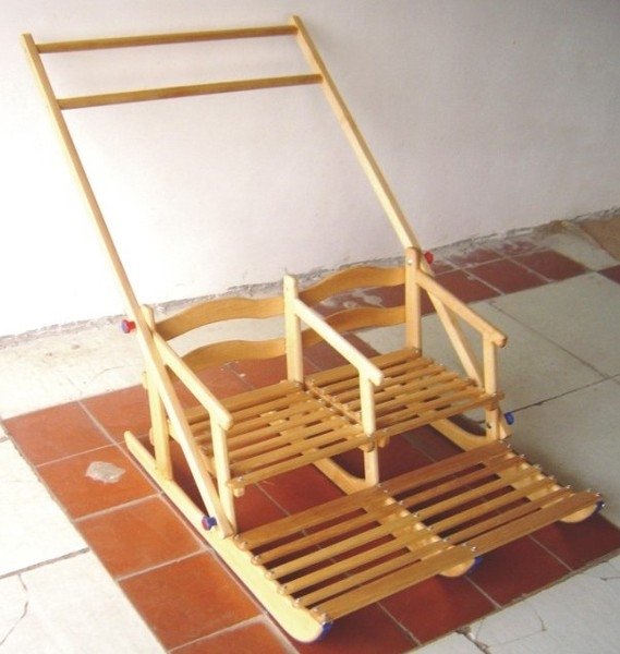 Пройшло чимало часу з того моменту. І ось ненароком я побачила в інтернеті такі санки. У кого є трійня чи близнятка - це Вам подарунок. Умілі руки тата чи діда легко їх "зліплять". Там де є два сидіння, легко доставити третє.