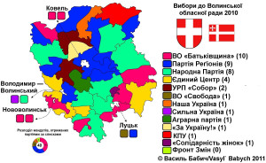 1. В області лише один мандат здобув представник Свободи. У місті Луцьку, та й тільки тому, що Батьківщина цим округом поступилась представнику НРУ який не зміг донести до виборців, що його підтримала партія Тимошенко котра у місті отримала удвічі більший результат ніж Свобода. Тому, якщо і говорити про певну перемогу Свободи на Волині то з великою натяжкою. Один мандат з сорока це надто слабкий результат як на партію, що задекларувала великий успіх на місцевих виборів, зокрема на Західній Україні.