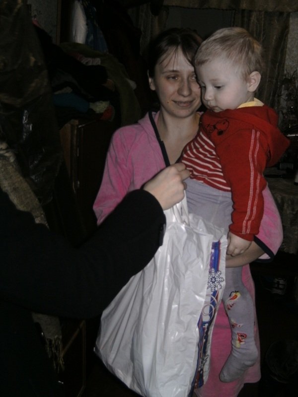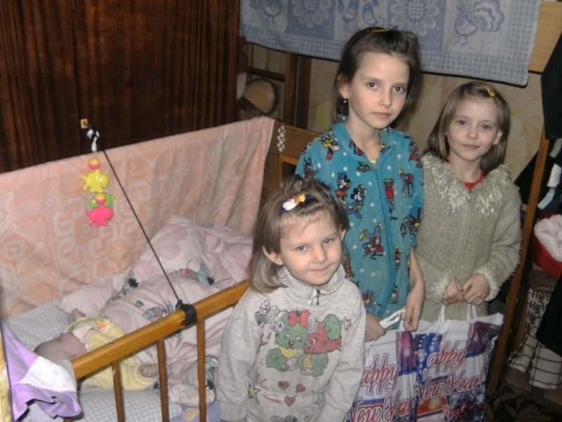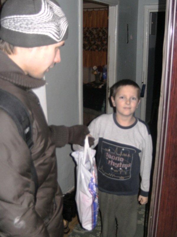 – Цього року я та мої друзі вирішили подарувати частинку свята тим, кого доля не наділила щедрими подарунками, – говорить Юля Пенська. – Ми відвідали близько 100 дітей з неблагополучних сімей, чи дітей сиріт, напів-сиріт. Були надзвичайно вражені побаченим. Всього лишень кілька сімей жили хоч і скромно, проте в помешканні був порядок і дітки доглянуті. Коли заходили в окремі сімї, дивувалися, як в таких умовах взагалі можливо жити, тим паче дітям. Будинки скидалися на сарайчики. Тільки уявіть – сім’я з 7 чоловік (2 дорослих і 5 дітей) туляться в маленькій кімнаті, яка слугує їм і за кухню, і за вітальню і за спальню! Малеча надзвичайно раділа подарункам, проте окремі батьки ставилися до нас з підозрою. А коли принесли подарунки 15-річній дівчинці, то виявилося, що вони потрібні скоріше її дитині-немовляті. Юній мамі уже не до іграшок і цукерок. Діти часто були в брудному одязі, босими ніжками стояли на голій долівці. Майже всім діткам дуже потрібен одяг...і їжа...і елементарний догляд.