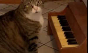 Вінслоу, семирічного смугастого котика з американського міста Філадельфія, навчили грати на крихітному піаніно, аби сповістити господарів, що час їсти або змінити туалет.
