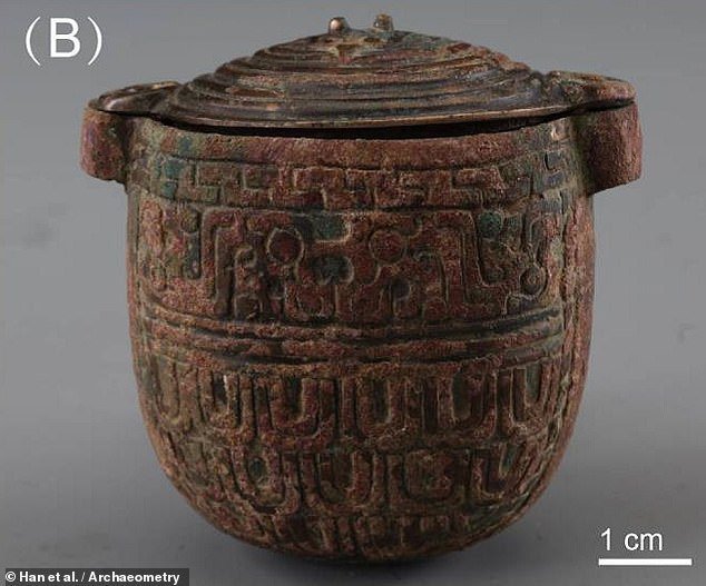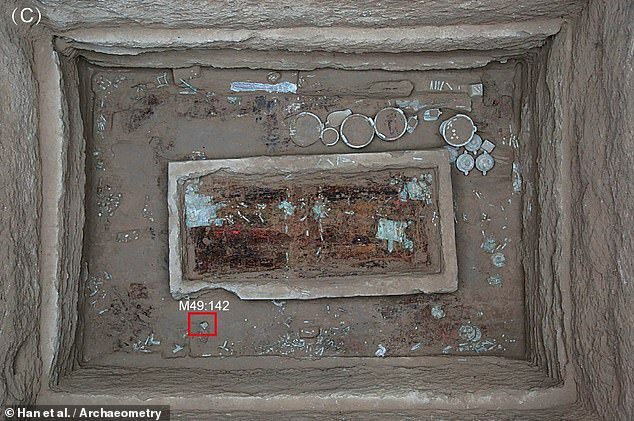 У гробниці знатної людини також знайшли бронзову похоронну зброю та багато прикрашений бронзовий посуд. В одній з посудин був м’який жовто-білий матеріал. Дослідники сприйняли його за косметичний крем.