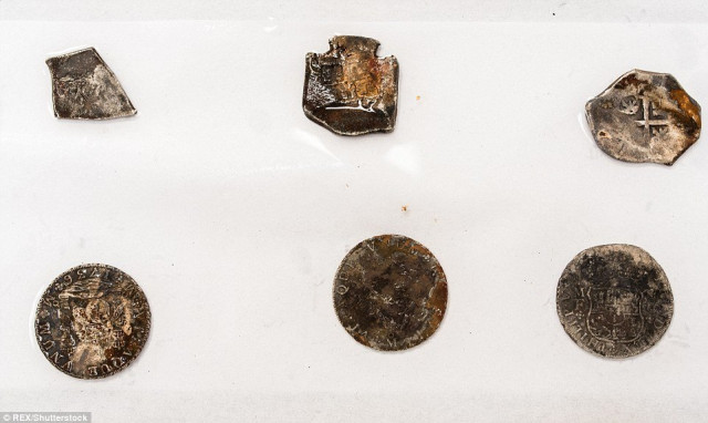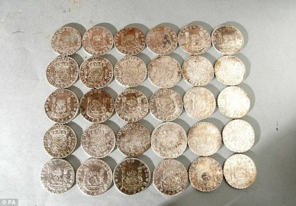 Пірнувши на глибину 85 футів (26 м), археологи виявили на морському дні срібні монети, зокрема давні дукатони, які мали невеликі спеціально зроблені отвори. Монети були вшиті в одяг моряків. Вчені вважають, що це була частина контрабандного товару.