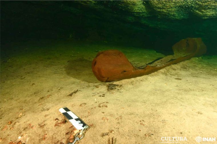 У своїй заяві INAH зазначає, що археологи також виявили кераміку, ритуальний ніж та фрески у формі рук на скелі у прісноводному басейні.