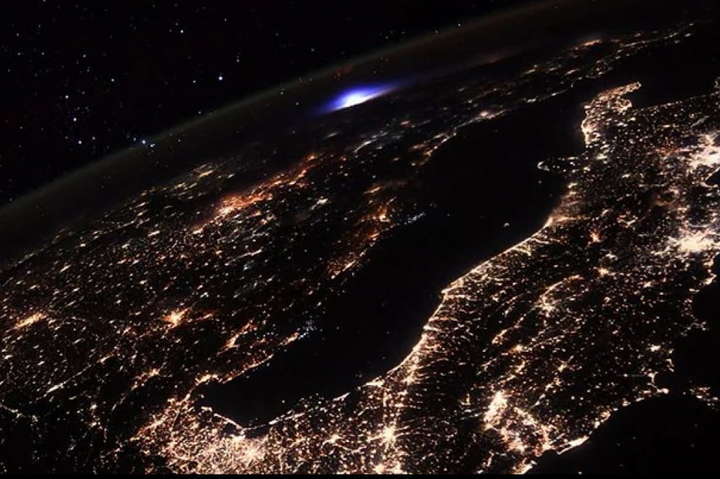 З’явилася фотографія французького астронавта Томаса Песке із борту МКС, який зафіксував синій спалах на нашій планеті.
