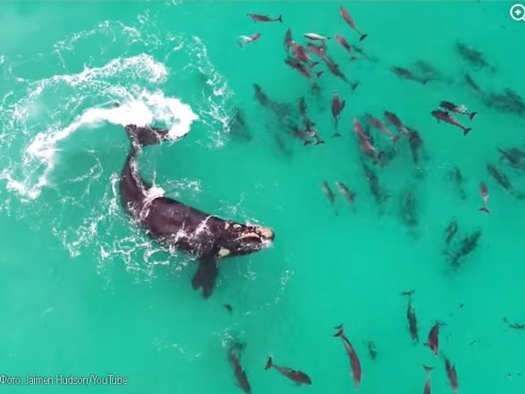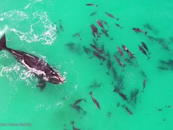 Світ вражає: Австралійський фотограф зазняв на відео, як кит грається з дельфінами