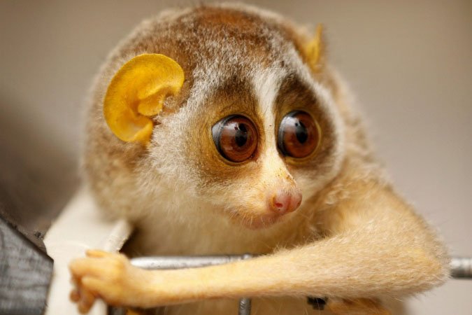 2. Товстий лорі. Ці примати мешкають у тропічних лісах Азії. Харчуються комахами, ягодами. Рідко можуть перекусити пташкою. На вигляд вони доволі милі - пухнасті, з величезними очима. Однак насправді є не більш безпечними, ніж кобри. Товсті лорі мають токсичні залози, з яких виділяється отрута. Вона здатна викликати анафілактичний шок й смерть як у дрібних тварин, так і в людини.